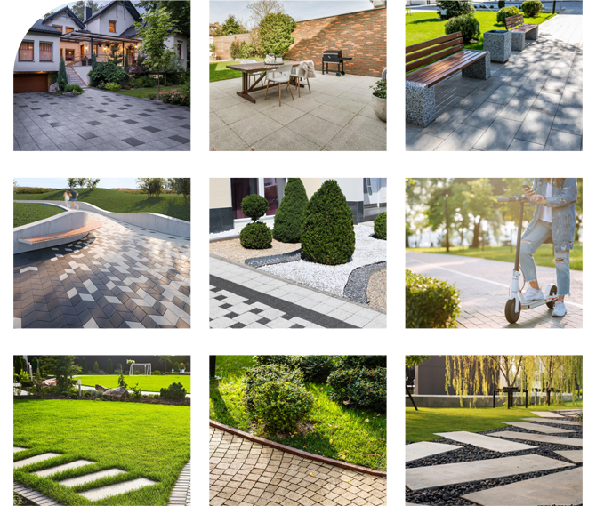 alei pietonale | curti | terase | parcuri | alei auto | piatete